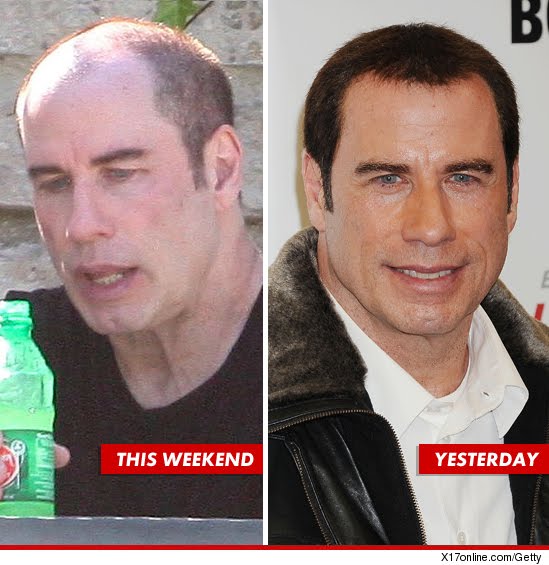 Just feel the shock, everyone knows John Travolta is mildly bald, but check out his head less than 3 days from the time the last pix was taken, he's all covered in hair.
